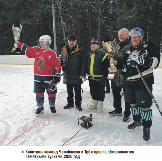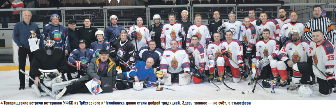 — В Челябинске о нашем клубе знают широко. Последние 4 года мы ездим на товарищеские игры в Челябинск, они к нам. Когда команда ветеранов управления ФСБ по Челябинской области приехала к нам в первый раз, им понравилось, и встречи стали традиционными: год мы играем у себя, год — в Челябинске. За эти 4 года они у себя в Челябинске организовали свою отдельную команду ветеранов и в декабре прошлого года создали «Лигу силовых структур по игре среди ветеранов в хоккей». Та команда, что приехала к нам сейчас, уже выступает в той лиге. Они нас приглашали играть в их лиге, но это очень далеко и накладно каждые выходные ездить в Челябинск. Поэтому мы пока играем в основном только дома.